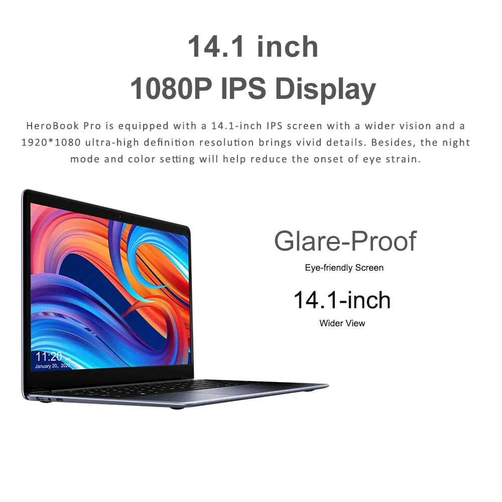 HeroBook Pro est équipé d'un écran IPS de 14.1 pouces avec une vision plus large et un 1920*1080