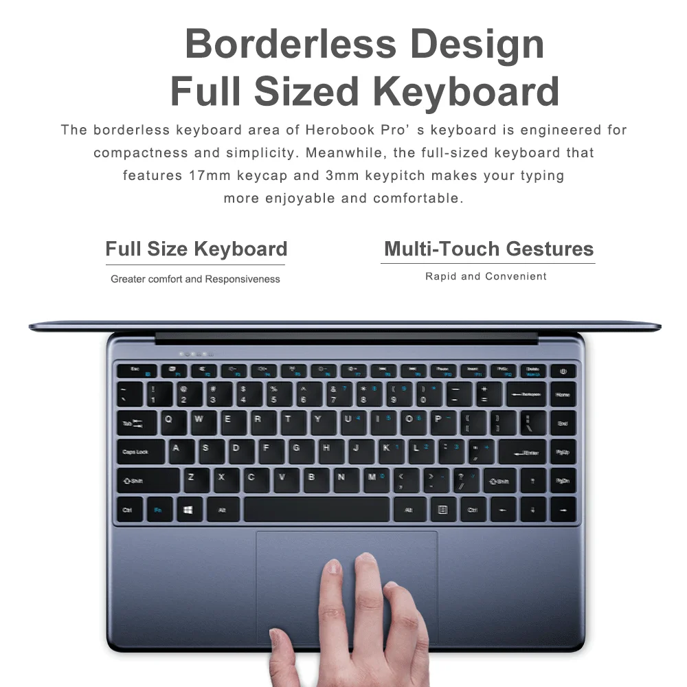 La zone de clavier sans marge du clavier de Herobook Pro est conçue pour