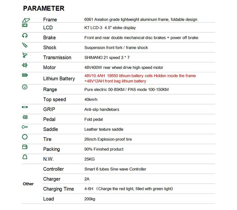 | 26 pouces vélo de montagne électrique 48V400W haute vitesse Double batterie au Lithium Range100km queue souple EBIKE pli vélo électrique |