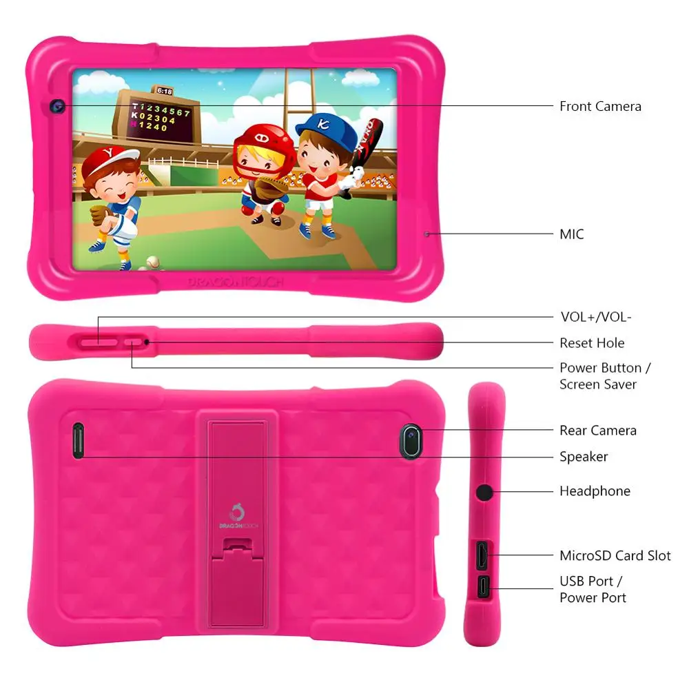 Remarque: si vous voulez un adaptateur européen, veuillez nous laisser un message. Merci! Jeux d'enfants et contrôle des parents: la version premium préinstallée de Kidoz offre beaucoup plus de contrôle aux parents. Les enfants peuvent avoir leur propre aire de jeux personnelle et l'interface conviviale pour les enfants le rend facile à utiliser. Ils peuvent avoir accès à des jeux et des vidéos amusants et éducatifs que vous choisissez pour eux. Les enfants peuvent accéder à des applications et des sites web éducatifs et divertissants sans aucun risque de tomber sur quelque chose d'inapproprié. Tout nouveau livre Disney gratuit inclus: les nouveaux livres Disney story, y compris 18 livres Disney story et 6 livres audio, tels que Frozen, la belle et la bête, Brave, Cars, Coco, trouver Nemo, cendrillon, Moana, Winnie l'ourson, Zootopia, Toy Story. Étui coloré résistant aux enfants: fait de silicone souple de haute qualité, offre une protection contre les chutes, les chocs et la saleté par les enfants en jeu, et a une pince arrière réglable en hauteur, le clip arrière a 3 niveaux de hauteur, plus pratique pour regarder des vidéos et jouer à des jeux sur les tables. Tablette complète puissante: la tablette Dragon Touch Y80 Kids est équipée du dernier système d'exploitation Android 8.1, du processeur Quad core 1.5 GHz, d'un stockage de 16 go avec 2 go de RAM, écran tactile HD 8 "écran IPS. L'emplacement pour carte Micro SD permet un stockage extensible supplémentaire de 64 go pour stocker des photos, de la musique, des films et des vidéos. Spécifications techniques:-modèle: Y80-système d'exploitation: Android 9.0-taille de l'écran: écran HD 7 "-mémoire: 2 go-taille du Flash: 16 go (extension maximale 64 go par emplacement pour carte MicroSD)-résolution: 1024x600-Configuration d'interface: port d'alimentation cc, emplacement pour carte MicroSD, chargement USB 2.0/transmission de données, prise casque standard 3.5mm-processeur: Cortex-A35 Quad-core 64 bits (1.5 GHz)-technologie sans fil: (802.11 b/g/n), BT 4.0-caméra: 2.0MP double caméra-Volume élevé: haut-parleur x 1-adaptateur secteur: DC 5 V/1.5A