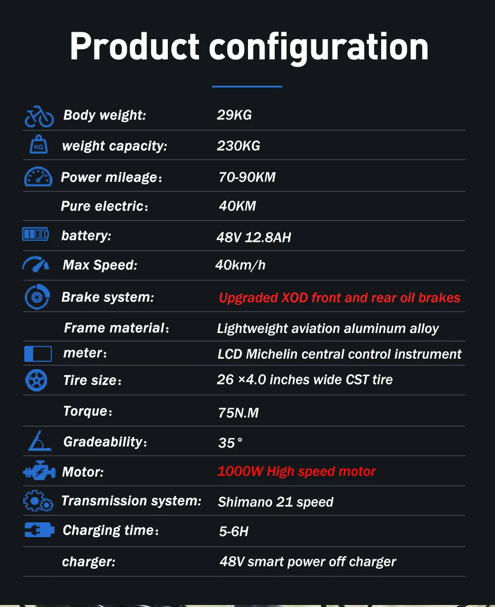 Vtt électrique 1000W à 21 vitesses, pneus 1.95 pouces, batterie 13ahBuy Now On Aliexpress
