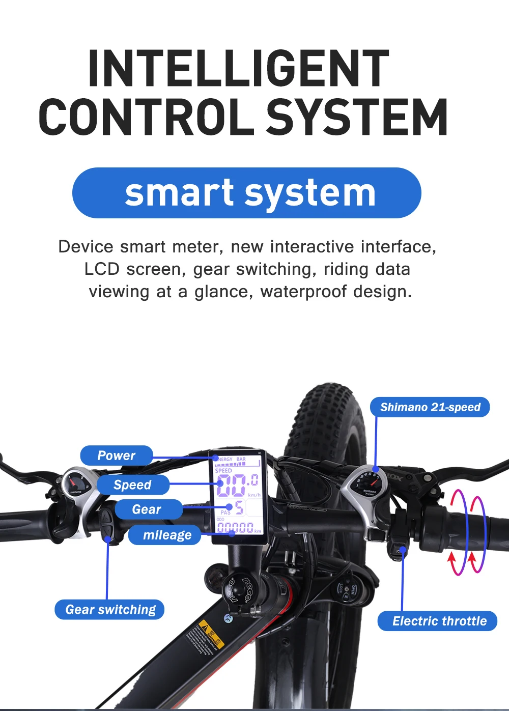 Vtt électrique 1000W à 21 vitesses, pneus 1.95 pouces, batterie 13ah