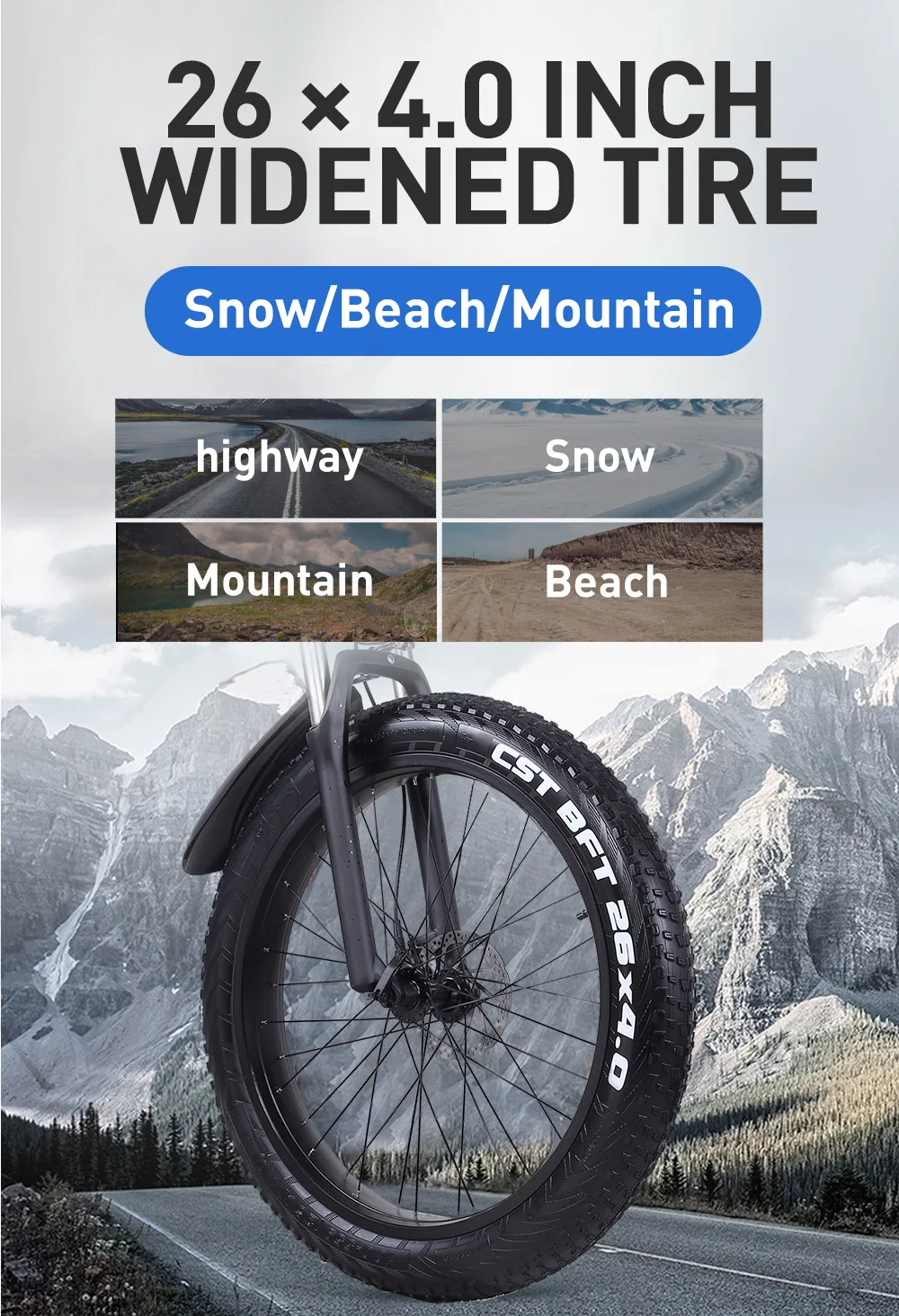 Vélo de plage électrique 1000W, gros pneu, 26 pouces, vélo de 48V pour hommes 4.0, vélo à moteur pour la neigeBuy Now On Aliexpress