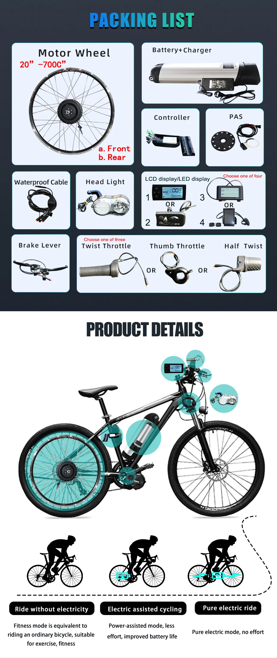 Kit de Conversion pour vélo électrique roue avant 18-29 pouces, moteur de bombardierBuy Now On Aliexpress