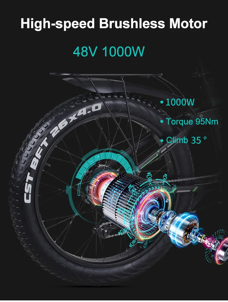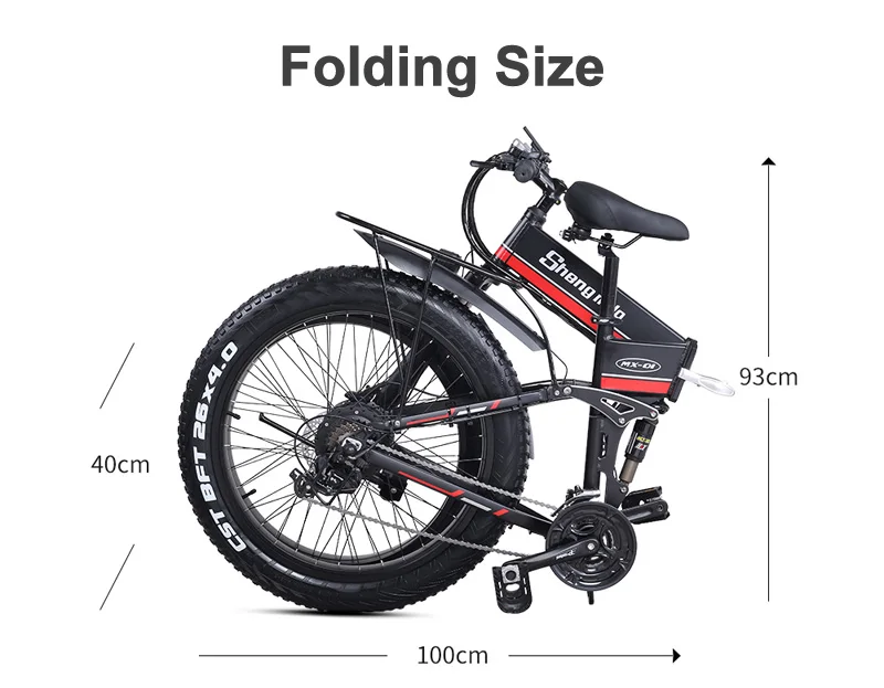 | Vélo électrique pliant à 5 niveaux de 26 pouces, moteur puissant de 48V 1000W, vélo Fat Bike VTT |