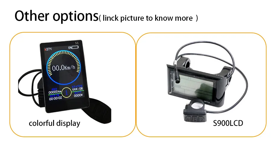 1. Moteur avant/moteur arrière2. Taille de la jante: 20 ", 24", 26 ", 27.5", 700C(28 "), si le client a besoin d'une autre taille, veuillez contacter le vendeur3. Accélérateur: pouce/demi-accélérateur/torsion