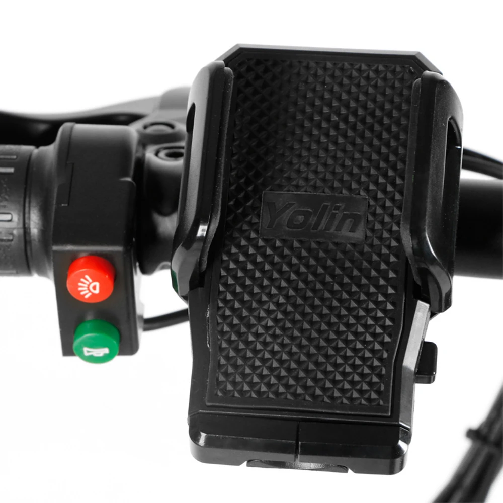 Le support pour téléphone intégré est pratique pour la navigation, et le compteur LCD indique votre vitesse, votre kilométrage et votre capacité de batterie.