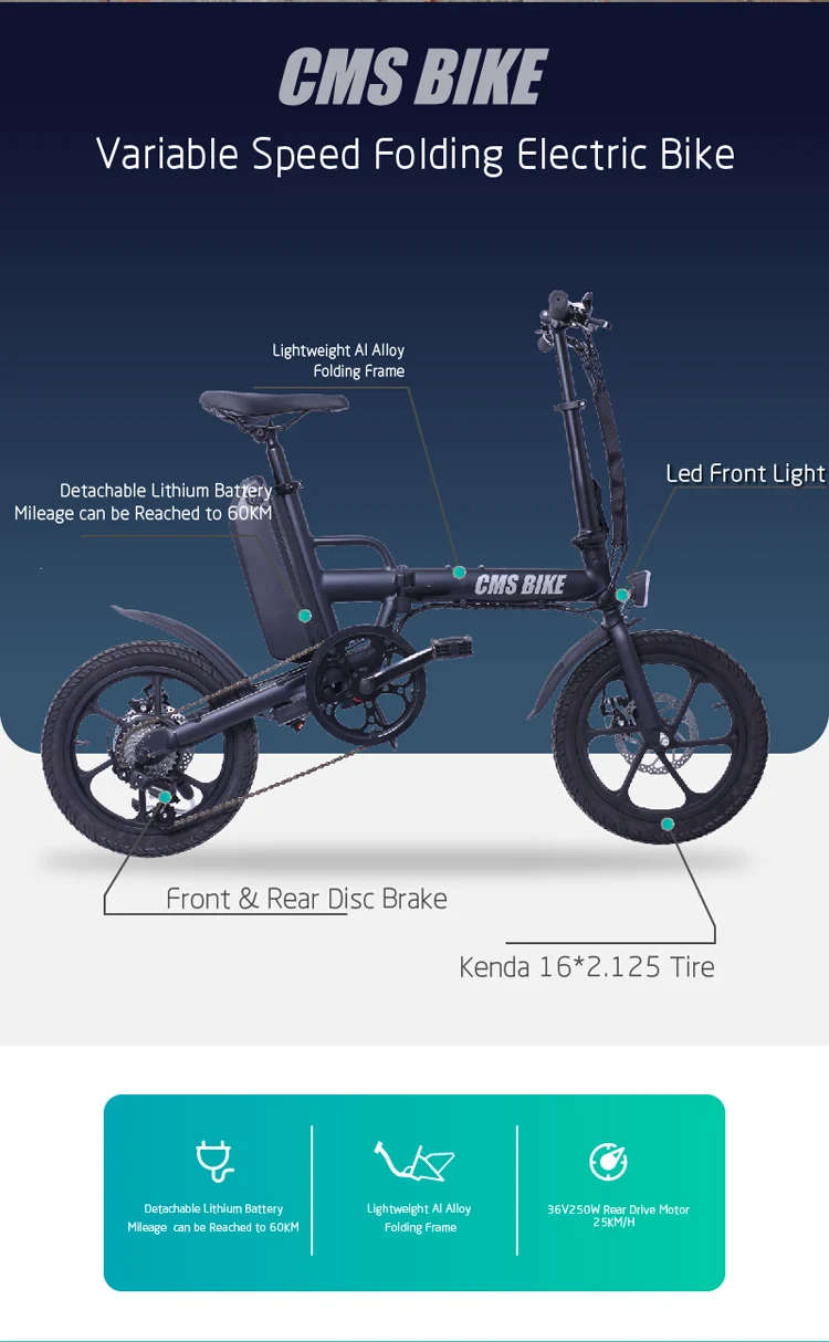 Vélo électrique pliant de 16 pouces 36V cms-f16-plus pour adultes