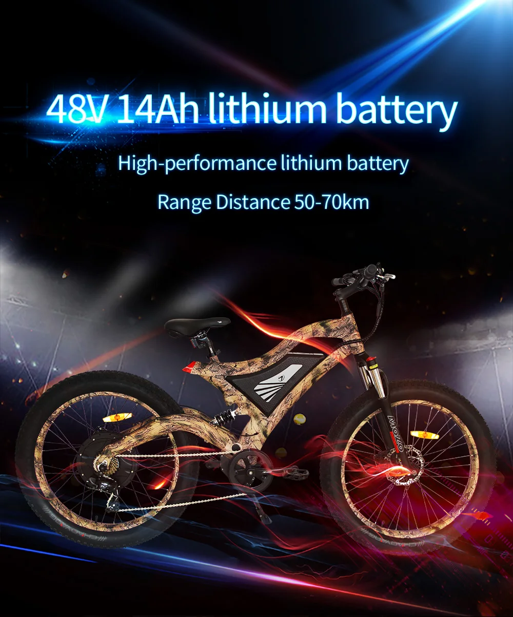 Vélo électrique de 26 pouces, puissante puissance de 400W 48V, batterie au Lithium amovible, fourche à Suspension verrouillable, bicyclette à assistance à pédaleBuy Now On Aliexpress